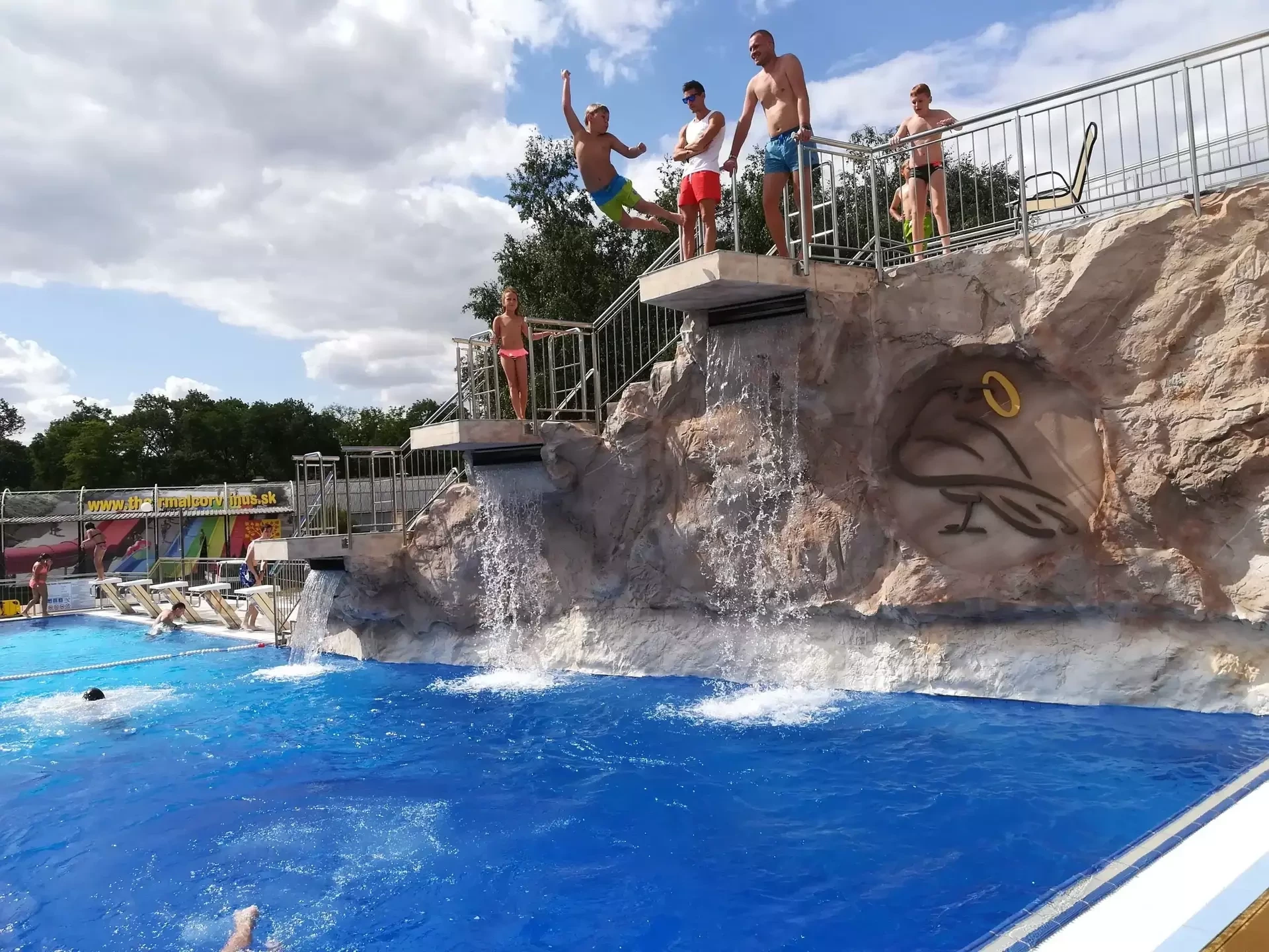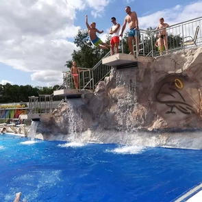 Kromě zážitku ze skákání nabízí pro zdatnější využít lezeckou stěnu nad vodou, nebo úžasný pohled z vodopádů. Ze skokanského bazénu, který má nepravidelný tvar, se skáče buď ze skokanských bloků nebo ze skokanských plošin z výšky 1,50 m, 2,60 m a 3,60 m nad hladinou vody.